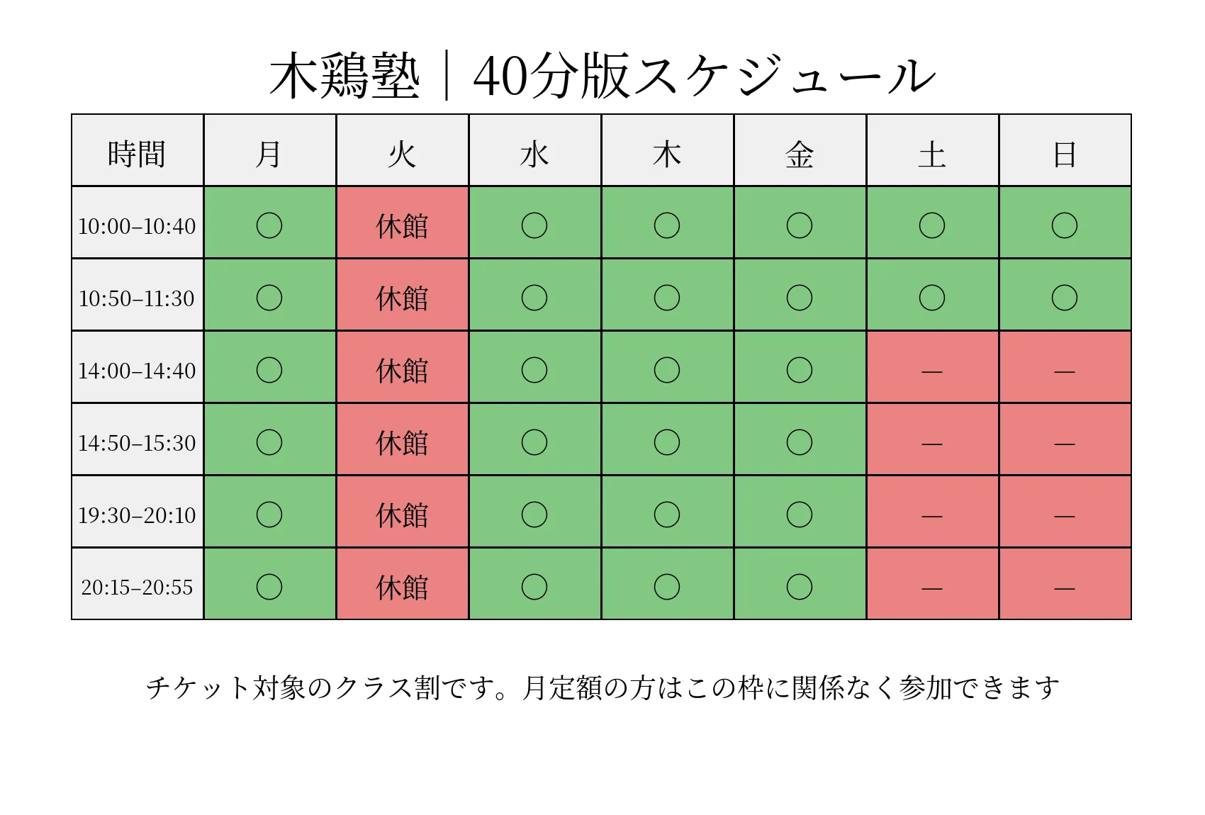 (行事により変更する場合がございます。臨時休業・休講はトップのカレンダー参照)